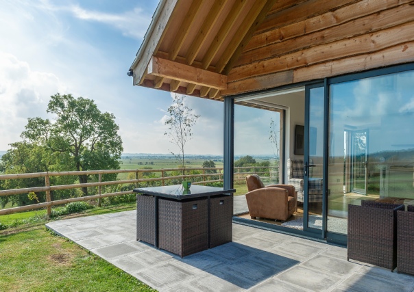 The views from the floor to ceiling windows are spectacular, looking out across the Somerset levels to Glastonbury Tor.