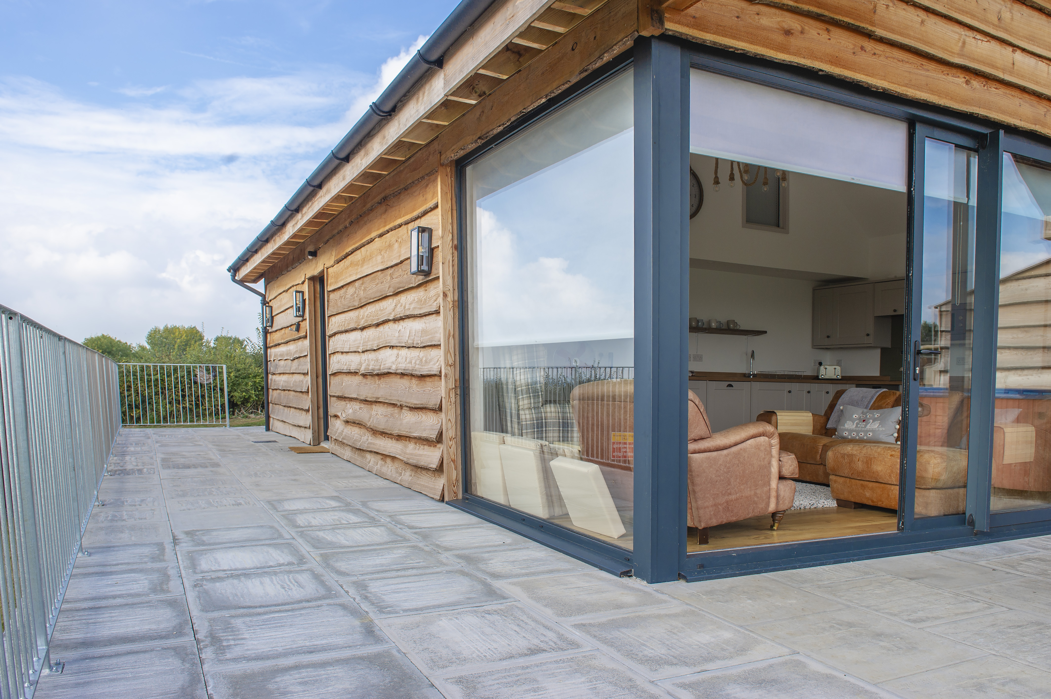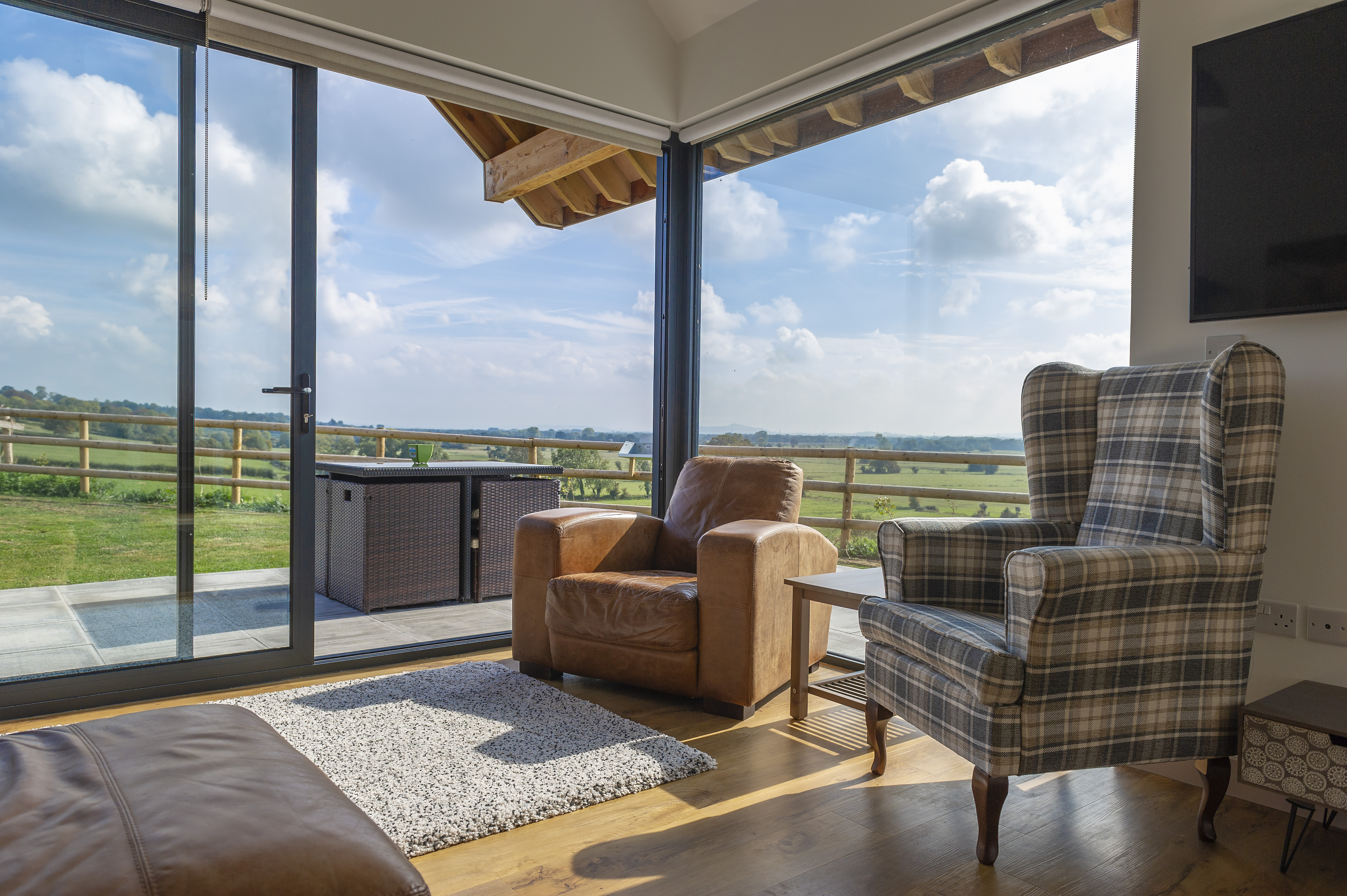 The views from the floor to ceiling windows are spectacular, looking out across the Somerset levels to Glastonbury Tor.